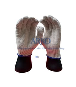 Made in Vietnam, these 100g knitted work gloves (Size 7) are a thicker, more durable option for demanding tasks such as agricultural harvesting (e.g., durian) and machinery-related work in higher-temperature environments; the snug freesize fit (approx. 22.5cm length) supports basic hand protection from dirt, friction, and minor scratches, and the gloves are washable and reusable for cost-effective bulk sourcing, typically packed 10 pairs/bag or according to buyer requirements.