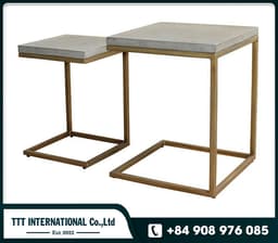 Made in Vietnam, this cement-top steel-frame table set features a clean, minimalist silhouette with two different sizes for flexible use as side tables, display stands, or compact coffee tables in hospitality and residential projects—ideal for international importers and B2B buyers sourcing durable concrete furniture with an industrial-modern look.