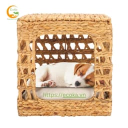 Made in Vietnam, this cube-shaped woven hyacinth cat hideaway doubles as a stylish floor-standing pet nook with a flat top and an airy open-weave structure for ventilation; the large front opening makes it easy for cats or small pets to enter and rest, while the removable cushion adds comfort and can be hand-washed for simple upkeep, making it a decor-friendly, eco-focused option for importers and distributors sourcing indoor pet beds in bulk.