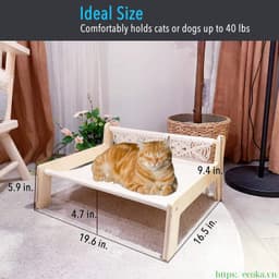 Made in Vietnam, this elevated cat hammock sofa bed features a sturdy wooden frame paired with a 100% cotton hammock surface to keep cats comfortable, supported, and off the floor; designed for indoor use with a solid rectangular layout, it offers a removable, washable cover (hand wash) and is positioned as an eco-friendly, waterproof, stocked item suitable for bulk sourcing and export supply, packed in cartons.