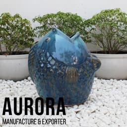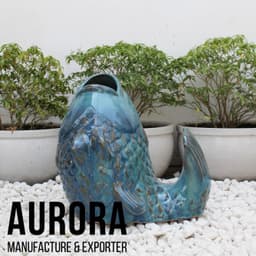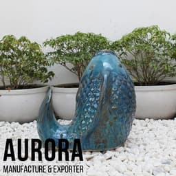 This glazed ceramic (clay) fish-shaped planter is a decorative statement piece for flower and green plant displays in home, garden, and nursery projects, matching classic/farmhouse styling with patterned detailing. Manufactured in Ho Chi Minh City, Vietnam, it is suitable for wholesale sourcing and export supply, with customization options for logo, packaging, and graphics to support private-label programs for international buyers.