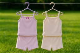 Made in Hanoi, Vietnam, this GOTS-certified baby girls’ 2-piece clothing set includes a sleeveless square-collar tank top and matching solid shorts in a soft knitted organic cotton/spandex blend, designed for breathable, quick-dry comfort for autumn wear; OEM/ODM service is available with customization for logo/packaging/graphics (MOQ 300 units), making it ideal for international importers, distributors, and babywear brands sourcing certified Vietnam-made apparel.