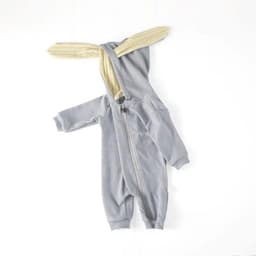Made in Hanoi, Vietnam, this cute unisex newborn set features a ribbed organic cotton/spandex romper with a smooth zipper closure plus a matching bunny hat (rabbit-tail style), suitable for autumn/winter collections and offered with OEM/ODM customization options (logo/packaging/graphics) for international babywear brands, importers, and distributors sourcing Vietnam-made infant apparel.