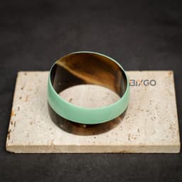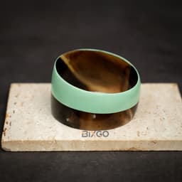 Made in Hanoi, Vietnam, this handcrafted buffalo horn cuff bracelet features an evenly rounded C-shape with a distinctive vertical half-painted jade green finish for a modern, premium look. With an eco-friendly aesthetic and unique craftsmanship, it is suitable for importers, boutiques, and gift retailers sourcing “Made in Vietnam” horn jewelry, with standard or custom sizing available for brand collections.