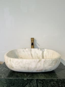 Model BST77 is a solid natural marble stone sink made in Vietnam in a premium Himalayan Green tone, featuring a large, heavy-duty build (H16 x 52 x 41 cm / 6.3 x 20.5 x 16.1 in) with approx. 26 kg (57.3 lbs) weight for excellent stability and long service life; ideal for hotel/resort projects, villas, and upscale residential bathrooms, supporting international importers and B2B buyers sourcing export-ready interior stone products with consistent finishing and reliable supply.