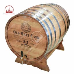 A large 300L barrel for commercial aging programs, cellar projects, or venue-scale presentation. The page highlights stainless steel bands and a chrome-plated tap, making it suitable for heavy-duty B2B usage where durability and consistent dispensing hardware matter.
