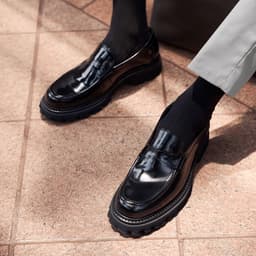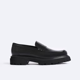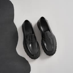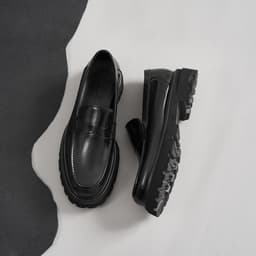 Men’s Chunky-Sole Leather Penny Loafers (Cow Leather, Black, Sizes 38–43)