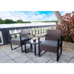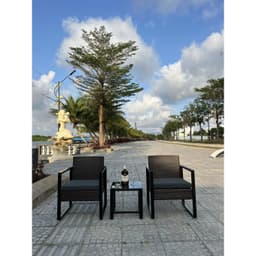 This 3-piece outdoor lounge set is designed for international buyers sourcing durable, modern patio seating from Vietnam. The set includes two armchairs with weather-resistant synthetic rattan weaving on a sturdy aluminum frame, plus a minimalist square side table with a tempered glass top—ideal for resorts, hospitality projects, cafés, balconies, and garden patios. Cushioned seating and easy-clean materials make it a practical choice for bulk purchasing and outdoor use.