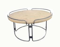 A contemporary round coffee table featuring a pine wood tabletop and a sturdy metal tube frame, designed for stable everyday use in living rooms, bedrooms, hotels, apartments, and office lounge areas. Manufactured in Vietnam, this modern piece offers an easy-to-clean surface and a clean, versatile look—ideal for international buyers sourcing reliable home furniture for wholesale and export supply.
