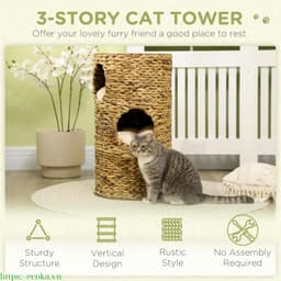 Handwoven in Vietnam, this multi-layer raised cat condo uses natural water hyacinth weaving with a steel wire frame to create a stable, breathable indoor hideaway, supplied with removable cushions filled with PP cotton (hand wash) for easy upkeep; designed for bulk sourcing and OEM/ODM inquiries, it is suitable for importers and distributors looking for eco-friendly, space-saving pet furniture, packed in carton/polybag for export.