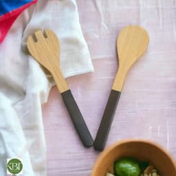 Natural Bamboo Cutlery Set (Rolled Design, Lacquered Handle, Biodegradable)