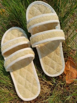 These natural loofah massage slippers combine a durable anti-slip rubber sole with a natural loofah fiber insole that gently massages and refreshes your feet while promoting blood circulation; ideal for daily relaxation, spa use, or beach wear, offering comfort and sustainability with eco-friendly materials.