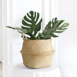 Handwoven in Ha Nam, Vietnam from 100% natural seagrass, this vintage-style belly basket works as a decorative planter cover and versatile storage solution for home, hotel, office, and retail display. The flexible round belly shape can be folded into a bowl form, making it suitable for indoor styling, gift seasons, and souvenir store assortments. Custom colors and sizes are available with MOQ from 100 pcs. Recommended use is as a pot cover (place the plant in a separate pot with a tray before inserting), and keep away from damp areas to protect the eco-friendly surface coating.
