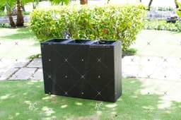 Model RAPL-006 is a long rectangular outdoor planter designed for hotels, apartments, villas, and landscape projects, featuring a modern woven rattan/wicker look with an easy-clean surface and multi-purpose use for greenery partitions and patio styling; size 100 x 30 x 70 cm, optional color choices, mail-pack ready, and manufactured in Ho Chi Minh City, Vietnam—ideal for international importers sourcing Vietnam-made PE rattan planters for outdoor furniture and garden décor supply programs.