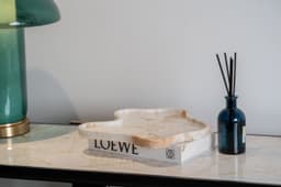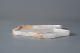 Stella is a sculptural art piece crafted from natural stone, showcasing an organic form inspired by stars and marine life, with each piece shaped by hand to highlight the purity and character of the material; available in two versions—one made entirely from pristine Snow White stone with a smooth, refined surface, and another combining Snow White with Valentino stone featuring warm golden veining—Stella embodies a harmonious blend of artistic expression and natural beauty, where every curve and vein is unique, making each piece a one-of-a-kind statement accent for sophisticated living spaces, with overall dimensions of 300 × 279.4 × 20 mm.