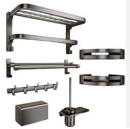 Made in Phu Tho, Vietnam, this modern, complete bathroom accessory set (including a wall-mounted towel rack and matching components) is designed for durable, waterproof, space-saving organization in bathrooms/toilets, with flexible wall/corner-mounted installation, custom sizing for projects, and OEM/ODM support for international buyers (logo customization from 30 units plus graphic/3D design assistance) for reliable sourcing and export supply.
