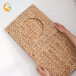 Handwoven in Vietnam from natural water hyacinth with an iron frame, this enclosed cat bed cave provides a secure, private resting space for small to medium pets while adding a classic, decorative look to indoor settings; it features a solid-tone woven finish (arrow weave style as provided), a removable and washable inner cushion filled with polyester/cotton/faux fur (hand wash), and is positioned as an eco-friendly, waterproof, stocked item suitable for wholesale sourcing and export supply.