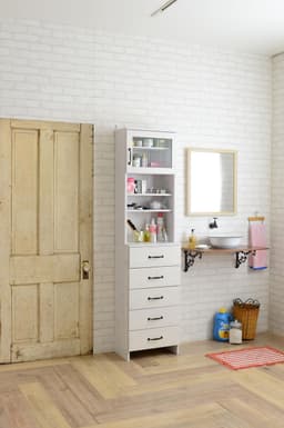 Country-Style Louver Door Cabinet With Glass Panel