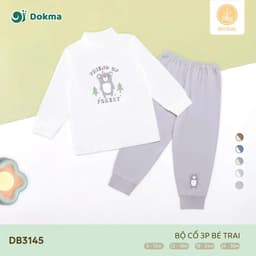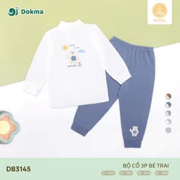 Dokma Boys’ 3P Collar Modal Set (Code: DB3145) is a comfortable two-piece outfit designed for infants and toddlers, crafted from premium modal fabric that is exceptionally soft, breathable, and gentle on sensitive skin. Featuring a long-sleeve top with a 3P collar for light warmth and cuffed pants for a neat, secure fit, this set offers ease of movement and all-day comfort for daily wear. Finished with cute animal prints and soft pastel tones, and available in brown beige, grey, white grey, white blue, and blue, in sizes 9–36 months, this Vietnam-made product is a reliable option for international buyers sourcing high-quality, skin-friendly baby apparel with strong retail appeal.