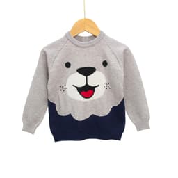 New-design kids basic clothing set featuring a pullover knit top with a cute bear-face graphic and color-block look (as shown), manufactured in Hanoi, Vietnam for export sourcing; listed with Spandex/Polyester waffle fabric and performance features such as breathable, anti-shrink and anti-bacterial, offered as in-stock items with OEM/ODM support and customization for logo, packaging and graphics (MOQ from 50 sets) plus 7-day sample support for international buyers.