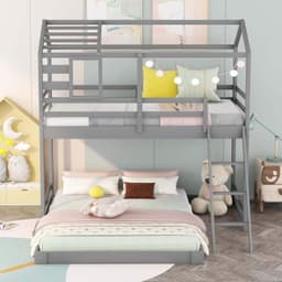 Made in Binh Duong, Vietnam, this L-shape “house frame” bunk bed is designed for kids’ rooms and hospitality projects, featuring a sturdy pine wood structure with iron components, an integrated ladder, and safety guardrails to support durable, space-efficient sleeping capacity for importers and B2B buyers sourcing indoor furniture programs.