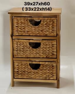 Designed for wardrobes, closets, bedrooms, and living spaces, this floor-standing storage cabinet combines a wood frame with water hyacinth wicker drawers to organize clothing and household items in a clean minimalist look. Made in Ho Chi Minh City, Vietnam, it is suitable for wholesale sourcing for distributors, retail chains, architects, and hospitality/real-estate projects, with OEM/ODM services available for custom logo, packaging, and graphic requirements.